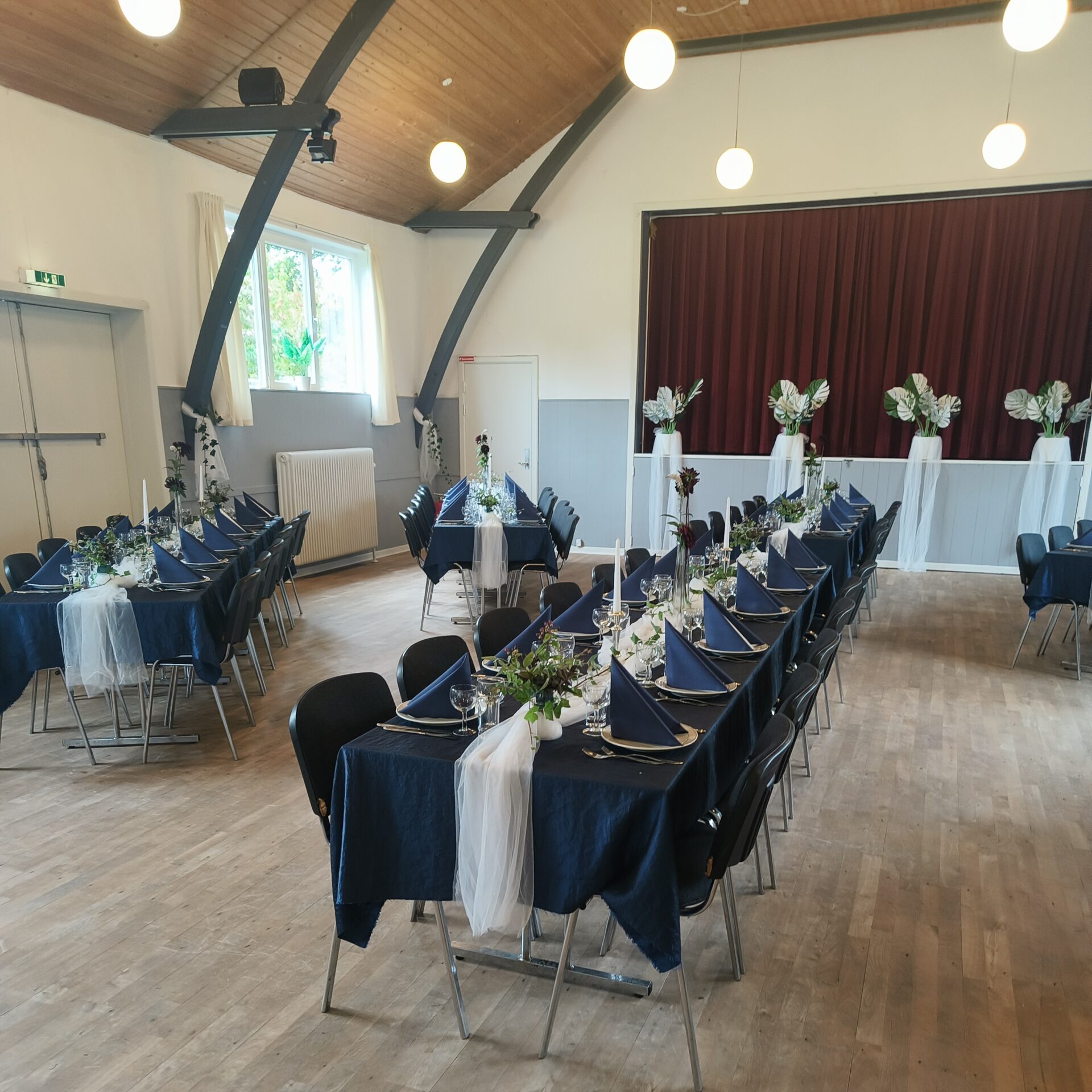 Køng forsamlingshus er et fleksibelt nøglehus med masser af muligheder for at tilpasse alting, så stemningen bliver den helt rigtige til din begivenhed.
